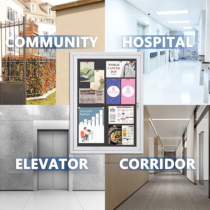 - π Wide Application β lockable bulletin board is great for offices, schools, apartments, hotels, hospitals, restaurants, and more. Ideal for public or shared spaces indoors or outdoors