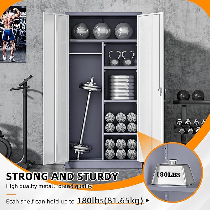 - 【Easy assembly】: Metal storage cabinet with 2 locking doors can be assembled step by step. There are 4 pre-holes on the back of the steel cabinet, you can screw it to the wall for stability.