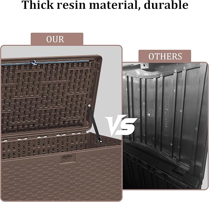 - Weatherproof Resin for Year-Round Use. Durable, waterproof resin, this deck box resists rain, sun, and UV exposure. Ideal for all-season use, it wonβt peel, rust, or warp like wooden or metal boxesβkeeping your items protected outdoors.
