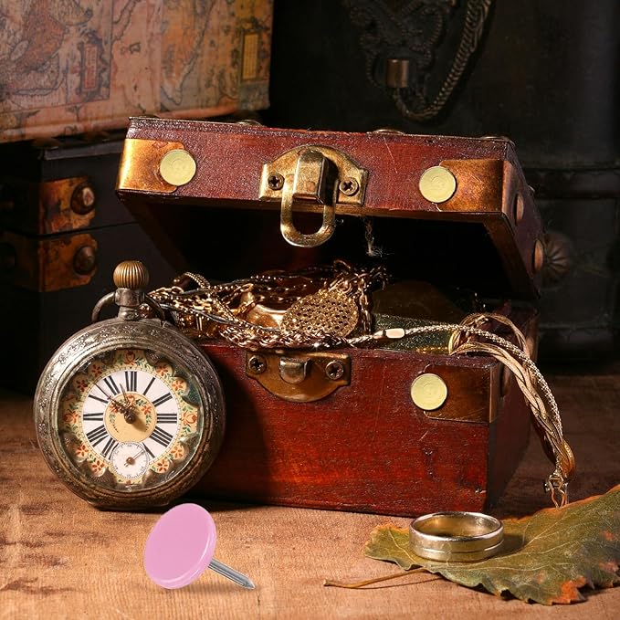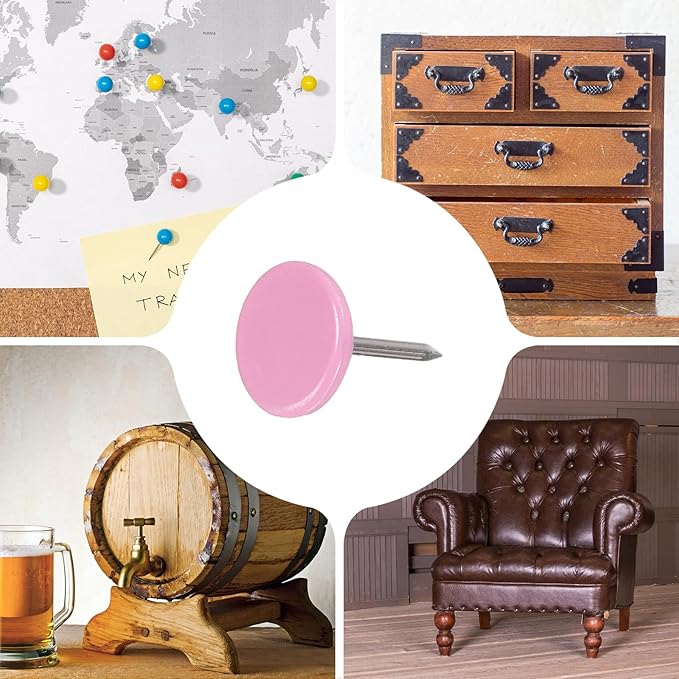 - [Wide Application] - The thumb tacks are both practical and decorative and can be used in a variety of furniture and DIY craft projects. Widely used to decorate furniture such as upholstery, sofas, headboards, chairs, benches, stools, wooden boxes, and can also be used to fix memos, pictures, maps and other lightweight items on cork boards