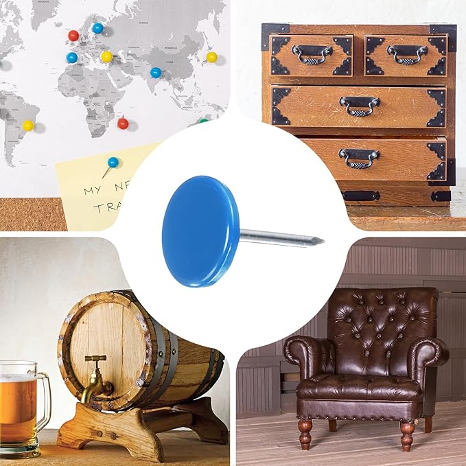 - [Wide Application] - The thumb tacks are both practical and decorative and can be used in a variety of furniture and DIY craft projects. Widely used to decorate furniture such as upholstery, sofas, headboards, chairs, benches, stools, wooden boxes, and can also be used to fix memos, pictures, maps and other lightweight items on cork boards