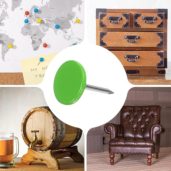 - [Wide Application] - The thumb tacks are both practical and decorative and can be used in a variety of furniture and DIY craft projects. Widely used to decorate furniture such as upholstery, sofas, headboards, chairs, benches, stools, wooden boxes, and can also be used to fix memos, pictures, maps and other lightweight items on cork boards