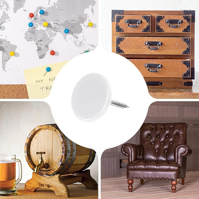 - [Wide Application] - The thumb tacks are both practical and decorative and can be used in a variety of furniture and DIY craft projects. Widely used to decorate furniture such as upholstery, sofas, headboards, chairs, benches, stools, wooden boxes, and can also be used to fix memos, pictures, maps and other lightweight items on cork boards