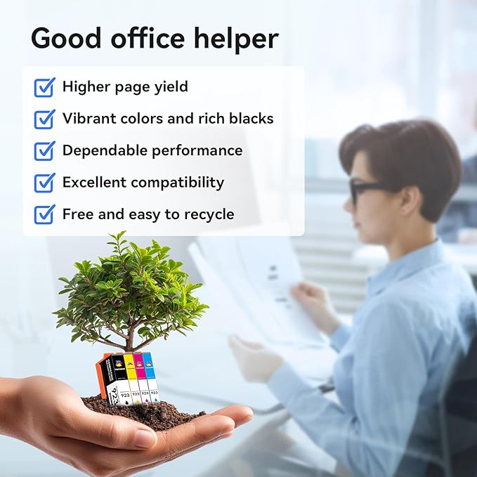- High Page Yield: 500 Pages per 923 black ink cartridge, 400 Pages per 923 color ink cartridge (based on 5% coverage).