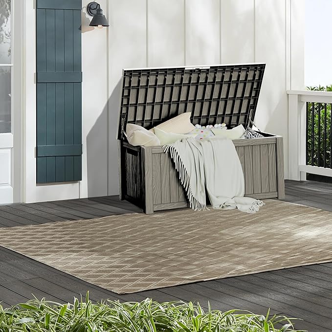 - Material: The patio outdoor storage box is made of the latest high-quality resin material, which makes this patio deck storage box waterproof, UV-resistant, anti-fading, and anti-bending protection, suitable for long-term outdoor use.