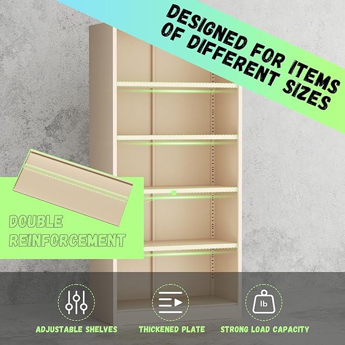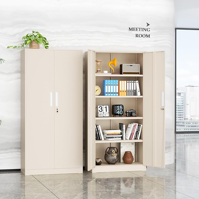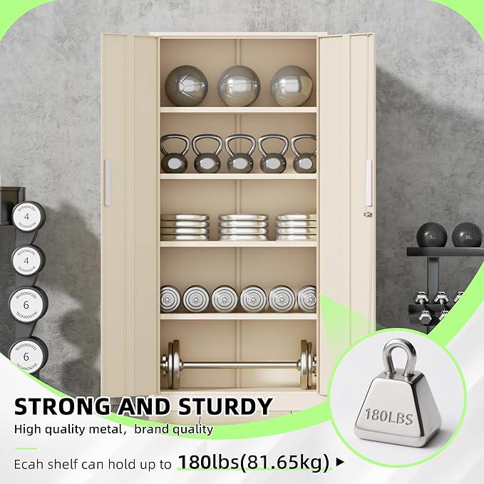 - 『4 Adjustable Shelves』: Tall storage cabinets with 4 adjustable shelves and 2 door to accommodate items of all sizes. Garage cabinets and storage system with lock picking to secure valuables, with two keys.
