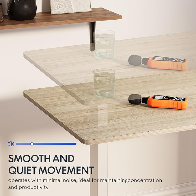 - SMOOTH ELECTRIC HEIGHT ADJUSTMENT: Say goodbye to manual height adjustments. This desk is equipped with an electric lift system that allows you to easily adjust the desk's height from 28.9" to 46.5". Even better, the motor operates quietly with noise levels below 50 dB, ensuring a peaceful working environment.