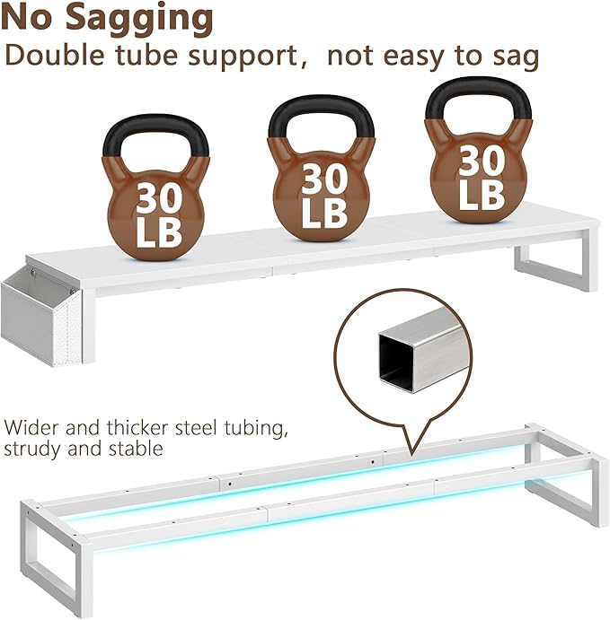 - 【Strong No Sagging】This wood monitor stand has double tube support for extremely sturdy and stable,the max weight capacity can up to 120 pounds. Heavy-duty steel footing, you don't have to worry about sagging or shaking during use. Each leg has non-slip pads to protect desk away from scratching.
