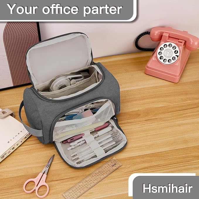- 【Quick Access Design】 Open pencil case from the top or The opening front flap and the 4 slots in the flap can fix commonly used pens; An extra handle on the side makes the pencil bag easy to carry