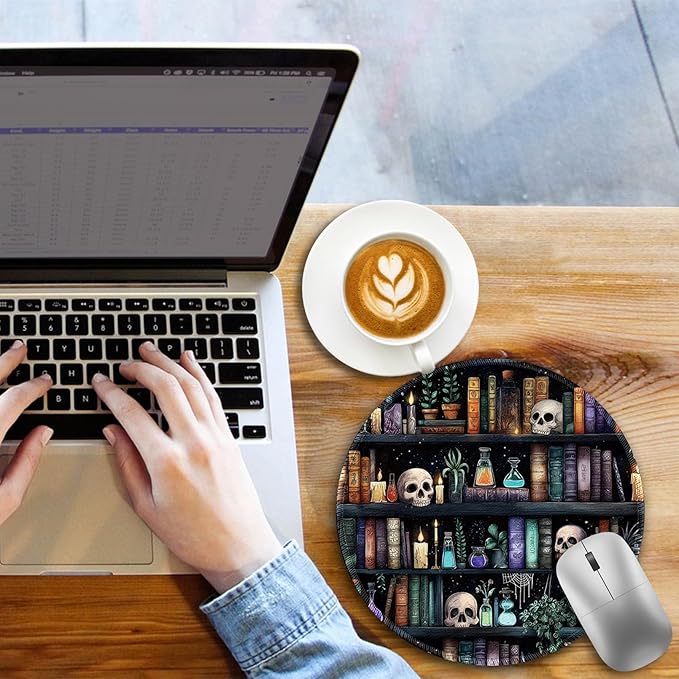 - Awesome Mouse Pad Design: The pretty mouse pad is printed with bookshelf and skulls to showcase a unique beauty, this design makes your mouse pad full of personality, your life more dynamic and less monotonous; A cute and vibrant look gives us a good visual enjoyment for positive emotions in working, studying or gaming, suitable for all style desktop, keyboard, laptop and wireless computer mouse