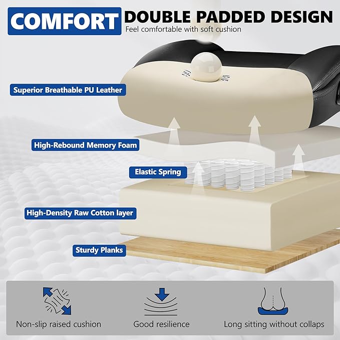 - Premium PU Leather:Crafted with high-quality PU leather that's easy to clean and built to last. This office desk chair features waterproof material with a smooth, breathable surfaceβperfect for your comfy office chair needs. Features high-density foam cushioning with natural leather grain for a premium executive look.