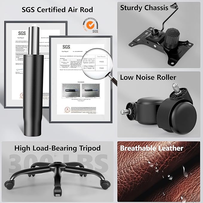 - Premium PU Leather:Crafted with high-quality PU leather that's easy to clean and built to last. This office desk chair features waterproof material with a smooth, breathable surfaceβperfect for your comfy office chair needs. Features high-density foam cushioning with natural leather grain for a premium executive look.