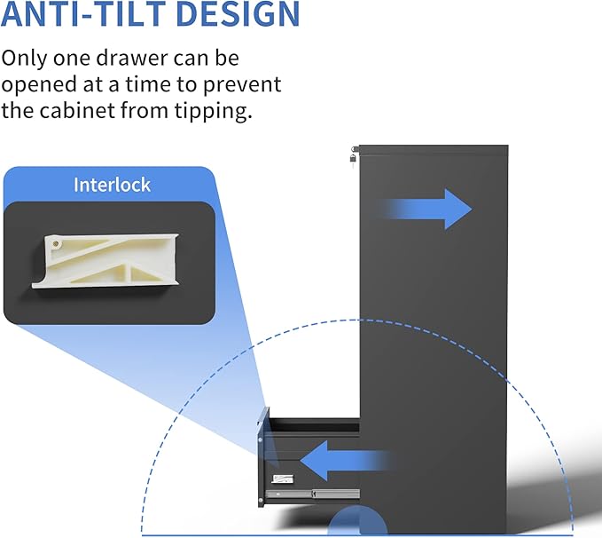 - 【Anti-tilt Design】This vertical legal file cabinet designed with full extension and steel ball-bearing suspension, all drawers of the file cabinets can be opened and closed quietly and easily. The anti-tilt system ensures that only one drawer can be open at a time, preventing the metal file cabinet from tipping over. You can have peace of mind knowing that your important documents and items are safe and secure.