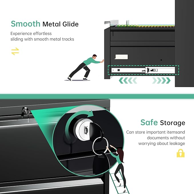 - ❤ Smooth & Quiet Operation -- The black file cabinet have smooth rolling bearing drawers, the drawers open and close effortlessly without jamming or noise. The sound produced when pulling the drawer is below 20 dB, which can create a quiet working environment for you.