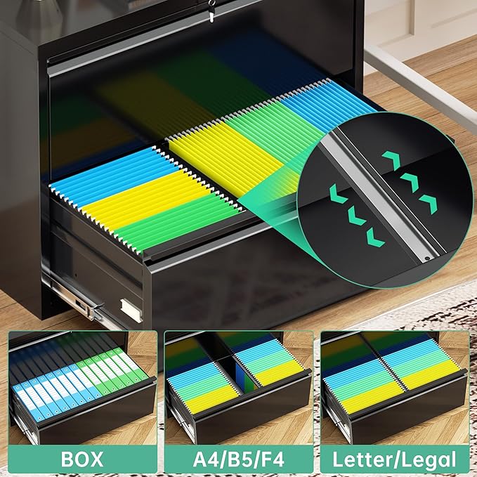 Superday Lateral File Cabinet 2 Drawer Metal File Cabinet with Lock, Black Filing Cabinets for Home Office, Locking Filing Cabinets Hanging Files Letter/Legal/F4/A4