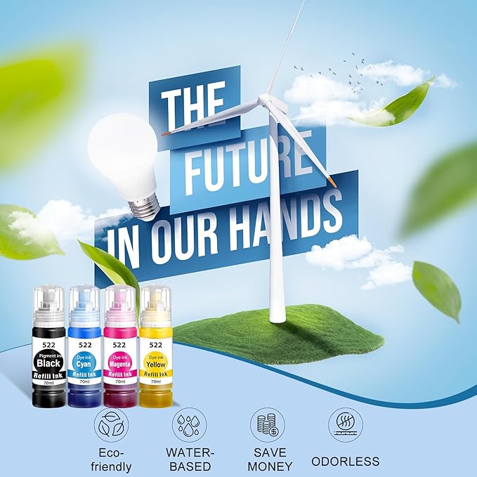 - Quality you can trust: Every high-capacity compatible with epson ecotank ink 522 passes strict quality tests. No ink leakage during transportation. 24-month warranty includedβdefective ink gets replacement.