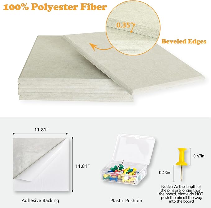 - CUSTOM SIZED BULLETIN BOARD - Comes with 6 packs wall panels measures 11.8" x 11.8", the large pushpin board can be customized to any size you need