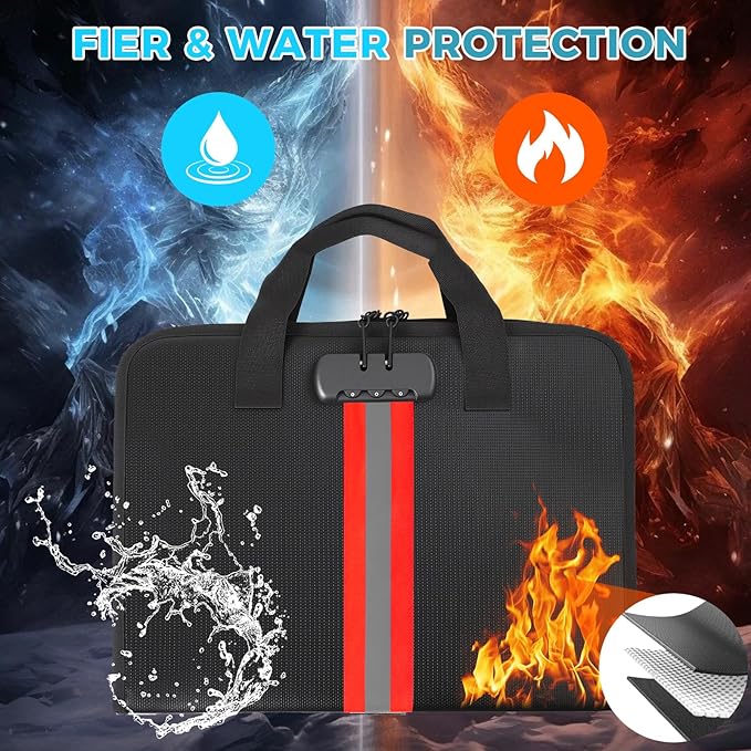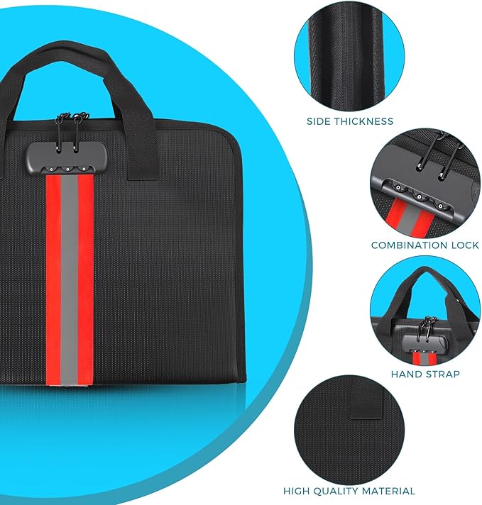 - High-Quality Materials:Fireproof expanding file organizer made of 3-layered silicone-coated fiberglass, withstands extreme temperatures up to 2500β has passed SGS testing(UL94 certified). Protects important documents from fire, flood, and wet weather conditions
