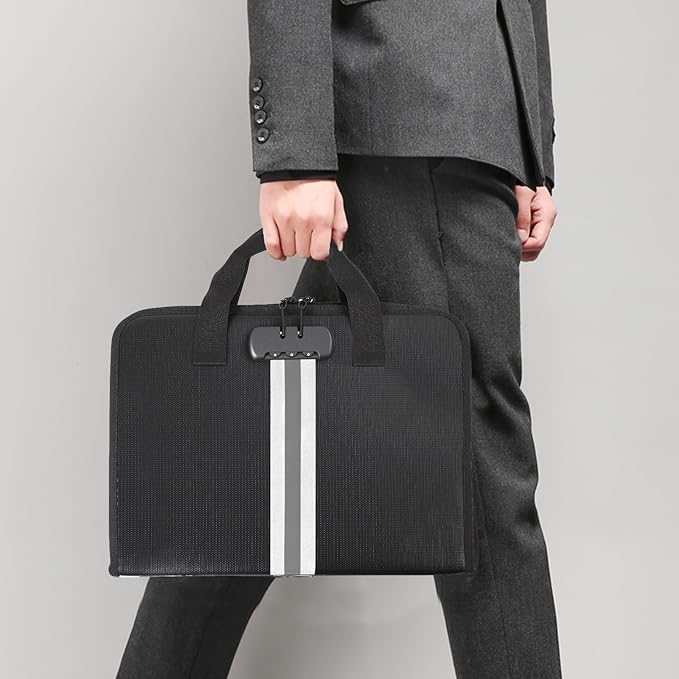 - High-Quality Materials:Fireproof expanding file organizer made of 3-layered silicone-coated fiberglass, withstands extreme temperatures up to 2500β has passed SGS testing(UL94 certified). Protects important documents from fire, flood, and wet weather conditions
