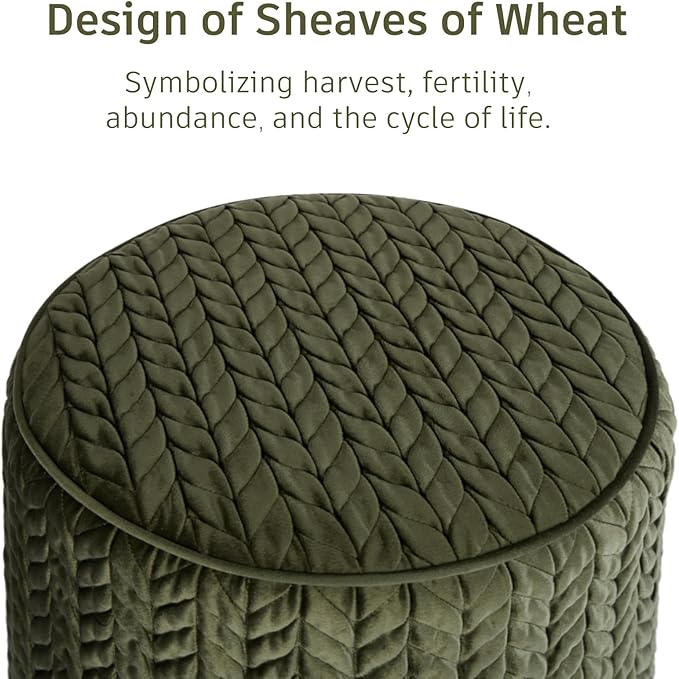 Modern Round Ottoman, Braided-Tufted Foot Stool Ottoman, Velvet Upholstered Vanity Stool for Makeup, Bedroom, Living Room, Dark Green