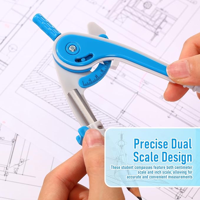 - 2 Diverse tips design compass: compass is made of plastic, sturdy mechanism can hold a radius well; The opposite side of the pencil end is an adjustable separated jaw, which allows you to fix the pencil