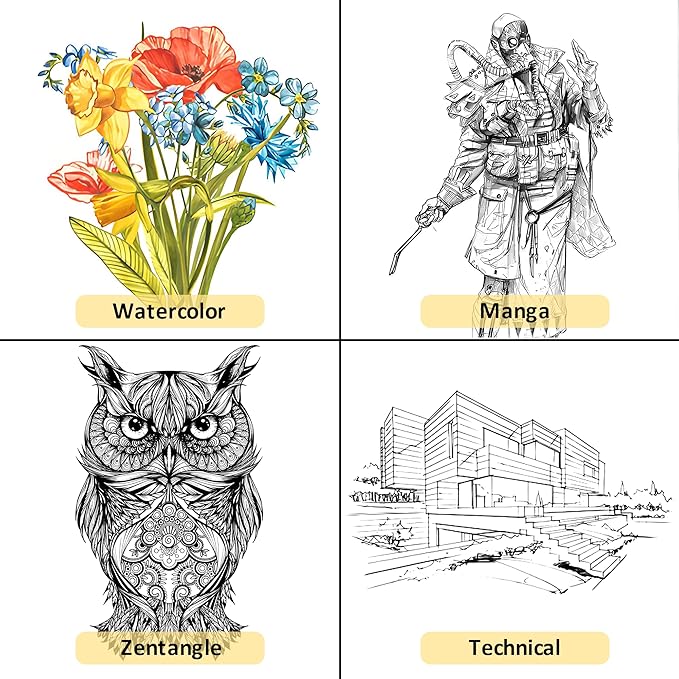 - Compatible with Watercolor, Markers & More: Use XWT art pens before or after watercolor, colored pencils, markers, or acrylics. The ink wonโt smear once dry. Perfect for bullet journaling, manga, comic drawing, Zentangle, sketching, outlining, and architectural illustration.