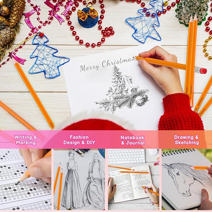 - 【Strong and Break-resistant Lead】Equipped with a robust, break-resistant HB graphite lead, these pencils #2 ensure smooth, bold, and long-lasting marks, ideal for extended use. The lead is smudge-free, easy to clean, and suitable for daily use. These pencils sharpen effortlessly with ease, maintaining a smooth, debris-free finish. Their thick graphite core delivers consistent lines, making them perfect for drawing, sketching, and writing.