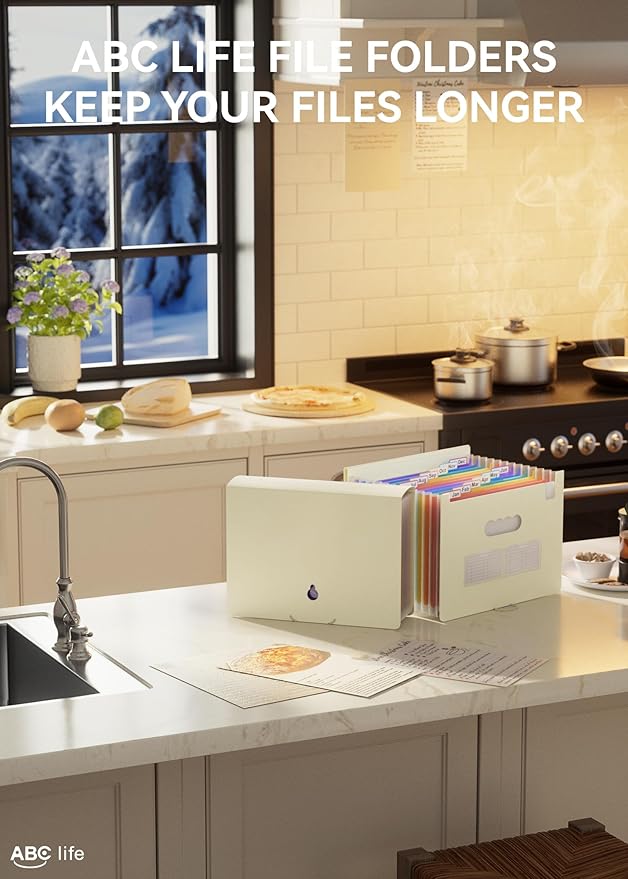 - 【12 POCKETS MONTHLY FILE ORGANIZER】ABC life 12 pockets Accordian File Organizer suitable for filing tax and storing important family documents. Product size is 13 "x 9.4"x 14", which can be used to store plenty of Letter/A4 size files.