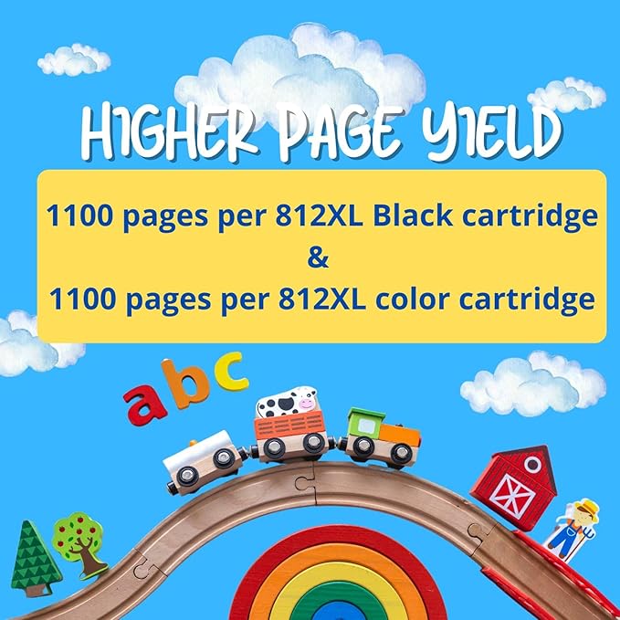- Higher Page Yield: Up to 1100 pages per 812XL Black cartridge & 1100 pages per 812XL color cartridge (based on 5% coverage)