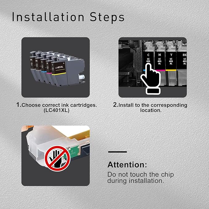 - Package Included: Ink Cartridges 1 x Black LC401XL, 1 x Cyan LC401XL, 1 x Magenta LC401XL, 1 x Yellow LC401XL (4Pack)