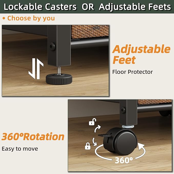 - 【Flexible Rolling File Cabinet】Equipped with 2 styles of footrests: lockable 360° swivel casters and height-adjustable feet. Choose between effortless movement or secure positioning—whichever fits your needs. With its charming design, this small file cabinet brings a touch of class while keeping your space professional
