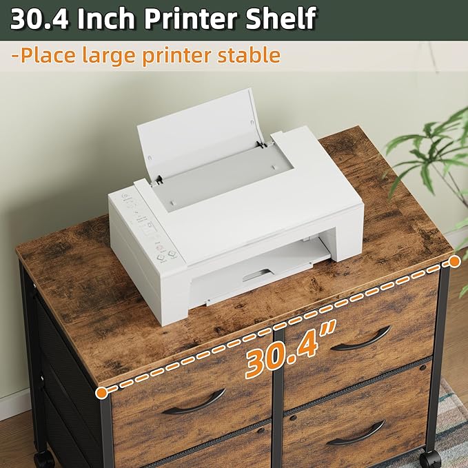 Lateral File Cabinet 4 Fabric Drawer, Mobile Filing Cabinet for Large Printer, Home Office Functional Small Office Storage Cabinet & Printer Stand, Fits A4/Letter Size, 30.4''W, Rustic Brown