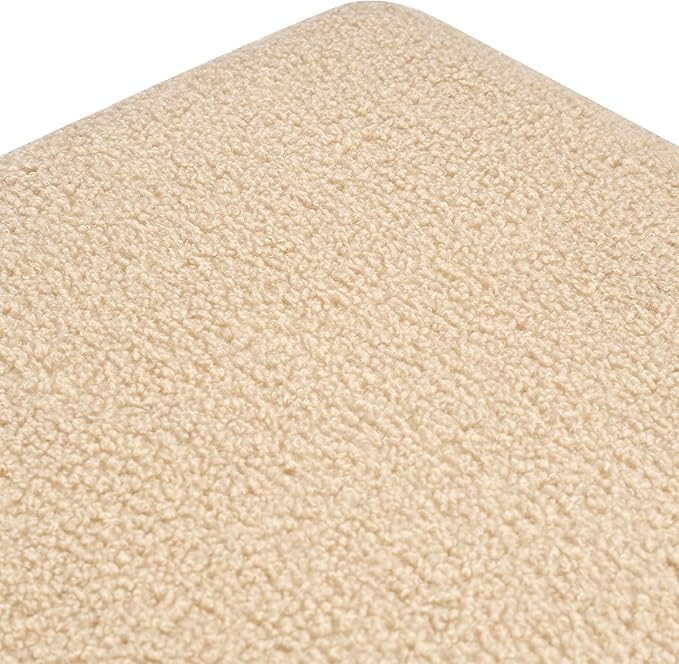 Adeco 17 Inch Soft Oatmeal Cube Ottoman Storage, Teddy Velvet Chair Foot Stools, Upholstered Vanity Stool with Hinged Lid, Solid Round Wood Legs