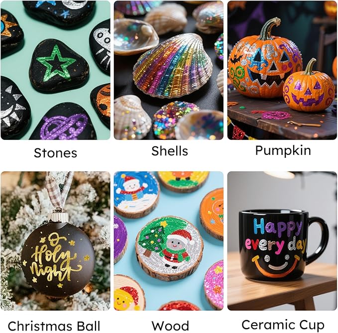 - PERFECT GLITTERING GIFT: This glitter paint pens set makes a sparkling gift. With a water-based, non-toxic formula safe for parent-child use, it’s a brilliant choice for birthdays, holidays, Halloween, Christmas, or as a gift for teenagers.