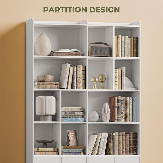 IRONCK Bookshelves and Bookcase, 6 Tiers Large Bookshelf with 4 Doors, Floor Standing Tall Display Storage Shelves for Home Office, Living Room, Bedroom, White
