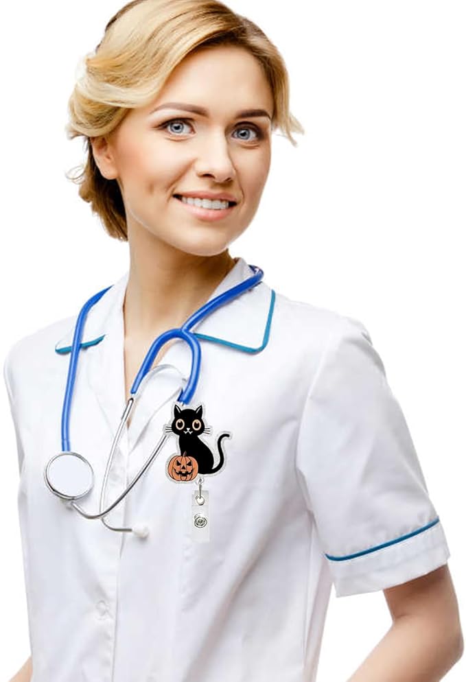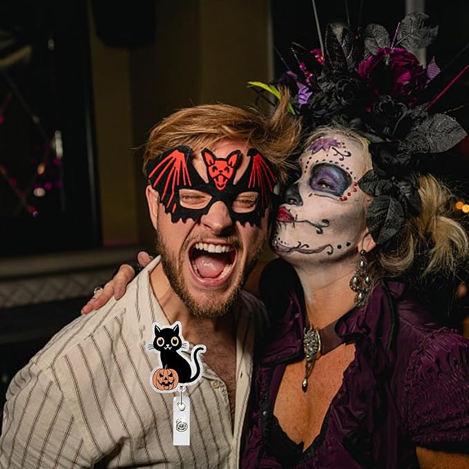 - Cute Halloween Design: The Halloween badge reel features an adorable black cat & pumpkin design, making it a perfect accessory for the festive season, enhancing your work attire with a touch of Halloween spirit