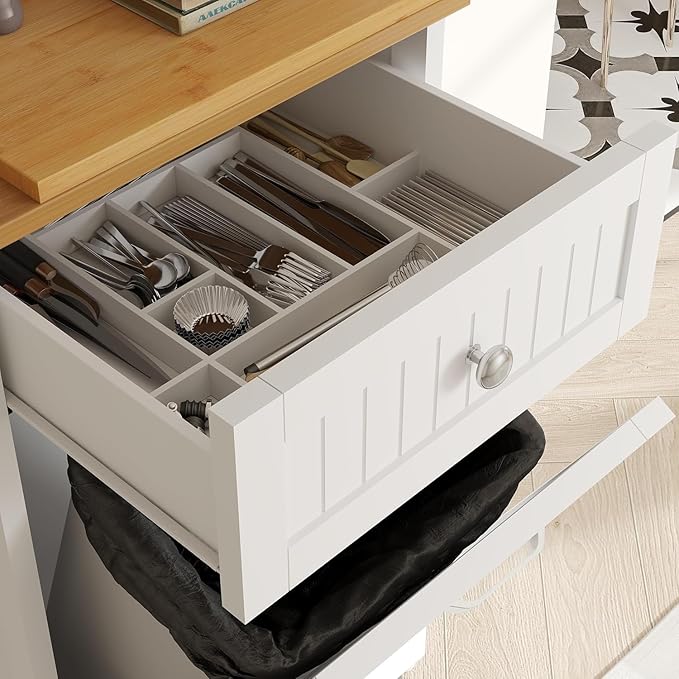 - Hide Mess, Reveal Style: Tired of staring at a bulky trash bin? This hideaway trash can cabinet conceals odors and clutter behind its tilt-out door, keeping your kitchen or laundry room instantly tidy. Fits standard 10-gallon bags (dimensions: 20"L x 13.1"W x 36"H), yet looks sleek enough to complement farmhouse or modern decor
