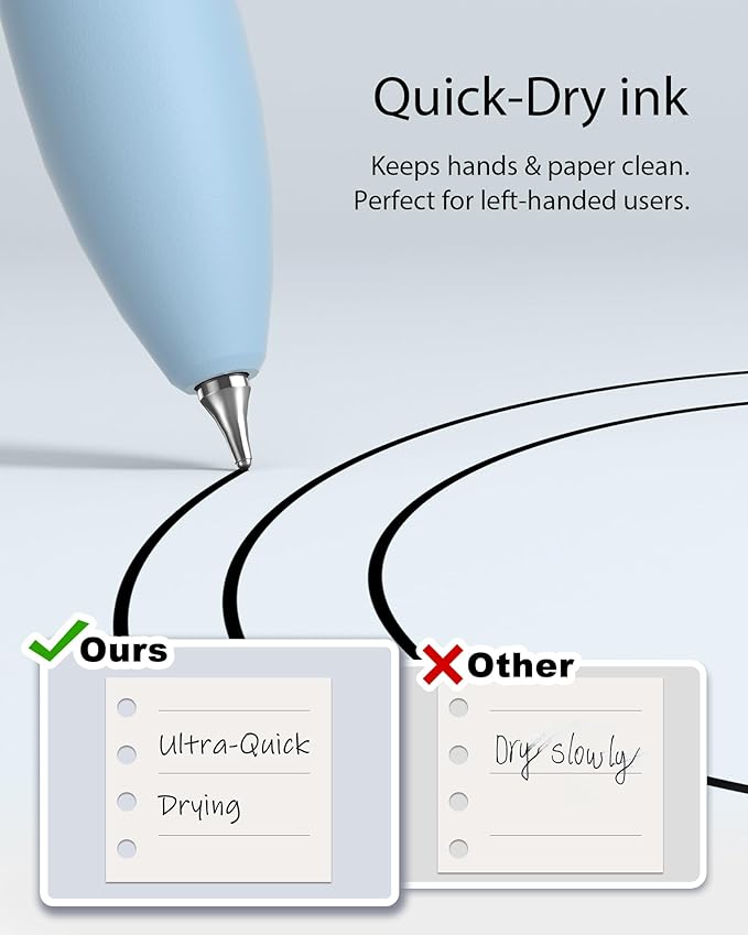- Quick-Dry Long Lasting Ink:0.7mm black ink can slide effortlessly, dry immediately, & is not easily dirty. It has a high-capacity reservoir (up to 2,296 Feet ), which is very suitable for left-handed & right-handed users.