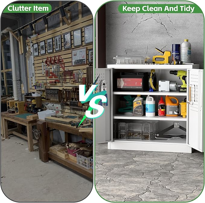 - Redesigned for Efficiency: Integrated Pegboard Doors + Free Hooks! "NEW UPGRADE: Double doors feature full pegboard panels and include four heavy-duty hooks. Instantly hang tools, cords, or accessories β maximizing every inch of space for a super-organized, ultra-convenient workspace."