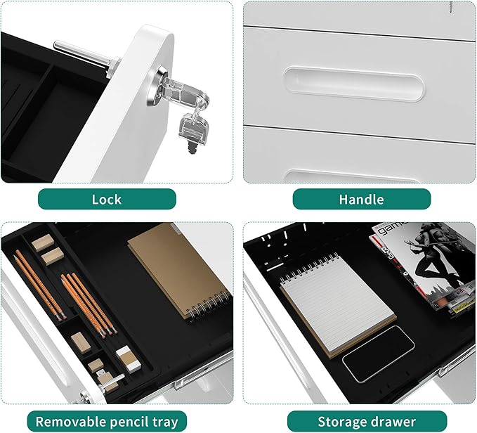 - Durable & Sturdy: The entire file cabinet, including the inner lining of all drawers, is built using robust, heavy-duty steel with protective finish for long-lasting durability; The file cabinet can bear up to 330lbs; It is sturdy enough to put printer on it without any dents