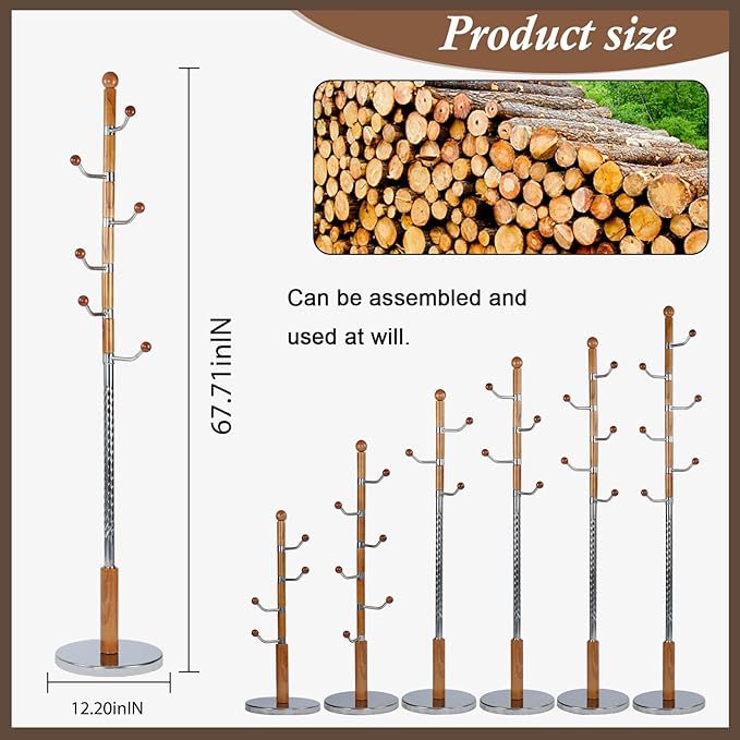 - NATURAL SOLID WOOD: The wooden coat rack is carefully selected from natural birch wood. The wooden coat rack freestanding has a natural texture, which is tough and sturdy, wear-resistant and not easy to crack, and durable