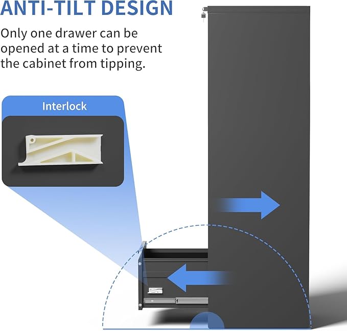 - 【Anti-tilt Design】This vertical legal file cabinet designed with full extension and steel ball-bearing suspension, all drawers of the file cabinets can be opened and closed quietly and easily. The anti-tilt system ensures that only one drawer can be open at a time, preventing the metal file cabinet from tipping over. You can have peace of mind knowing that your important documents and items are safe and secure.