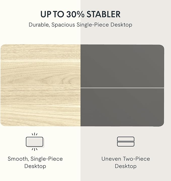 - AMPLE WHOLE-PIECE DESKTOP: With its whole-piece 1β eco-friendly desktop, this standing desk provides plenty of room for your computer setup, documents, and accessories, creating a well-organized and productive work environment. Due to hand measurements, desktop dimensions may vary slightly by 0 to 2β.