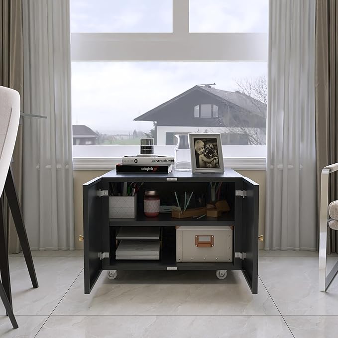 Small Space Printer Stand with Doors, Mini Fridge Stand for Laundry, 3D Printer Stand with Storage, Low Printer Table, Modern Under Desk for Home Office, Small Carts for Scanner, Fax