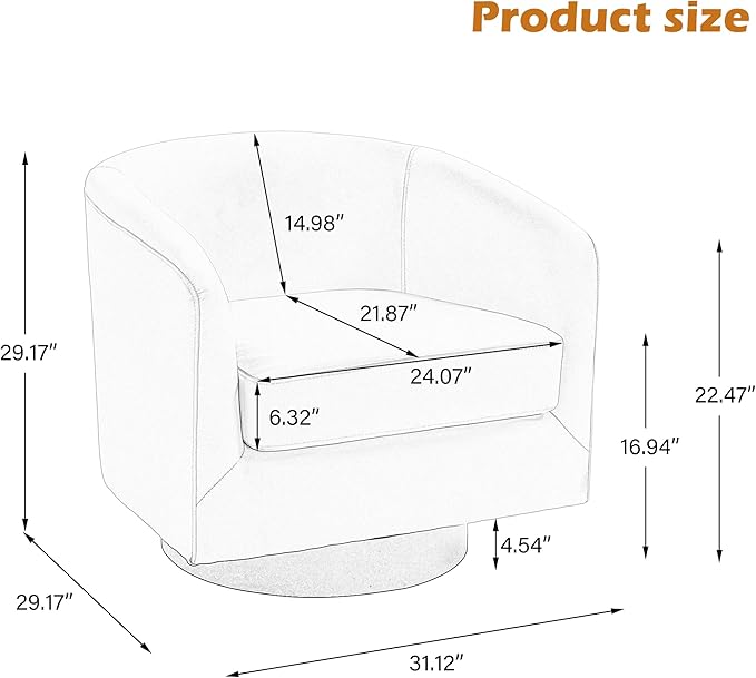 - 360° Swivel Base - The accent chair rotates 360 degrees smoothly and quietly, allowing easy movement without repositioning. Bring your family and friends more comfortable leisure experience.