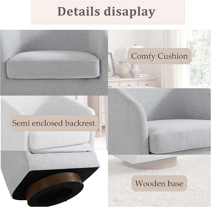- 360° Swivel Base - The accent chair rotates 360 degrees smoothly and quietly, allowing easy movement without repositioning. Bring your family and friends more comfortable leisure experience.