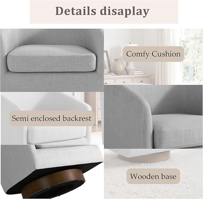- 360° Swivel Base - The accent chair rotates 360 degrees smoothly and quietly, allowing easy movement without repositioning. Bring your family and friends more comfortable leisure experience.
