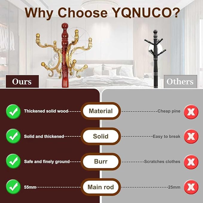 - AAA LEVEL BIRCH WOODEN MATERIAL: This coat rack is crafted from high quality solid birch wood, ensuring durability and a sturdy structure capable of holding your clothes and items without wobbling. The freestanding coat rack’s double-thickened, round base offers excellent stability. It’s a reliable choice that brings both steadiness and elegance to your home!