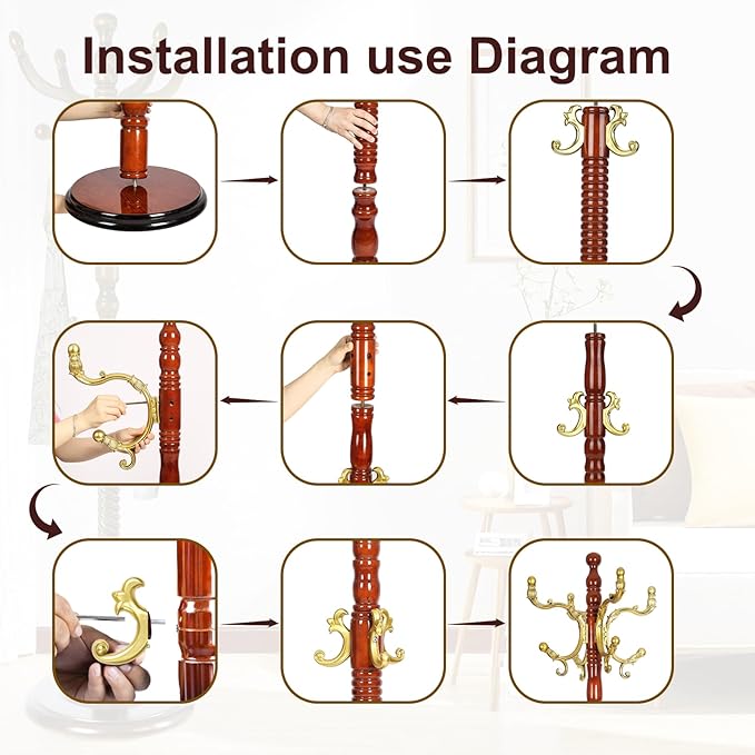- EFFORTLESS AND QUICK ASSEMBLY: The coat rack comes together effortlessly in mere minutes. Simply tighten the frame poles and hooks with the threaded inserts, and your coat rack is ready to use. No complicated tools required. Save time and effort to enjoy a convenient lifestyle and effortlessly create a stylish home of your own.