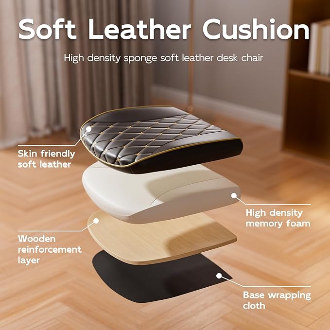 - Premium PU leather desk chair with a rocking backrest: Crafted with high-quality PU leather that is easy to clean and durable, the chair features a 90Β°β120Β° rocking backrest for flexible work positioning, making it a comfortable choice for all-day sitting